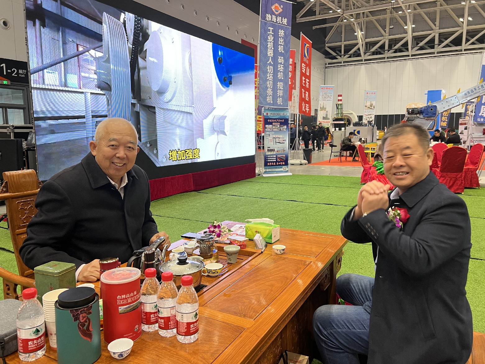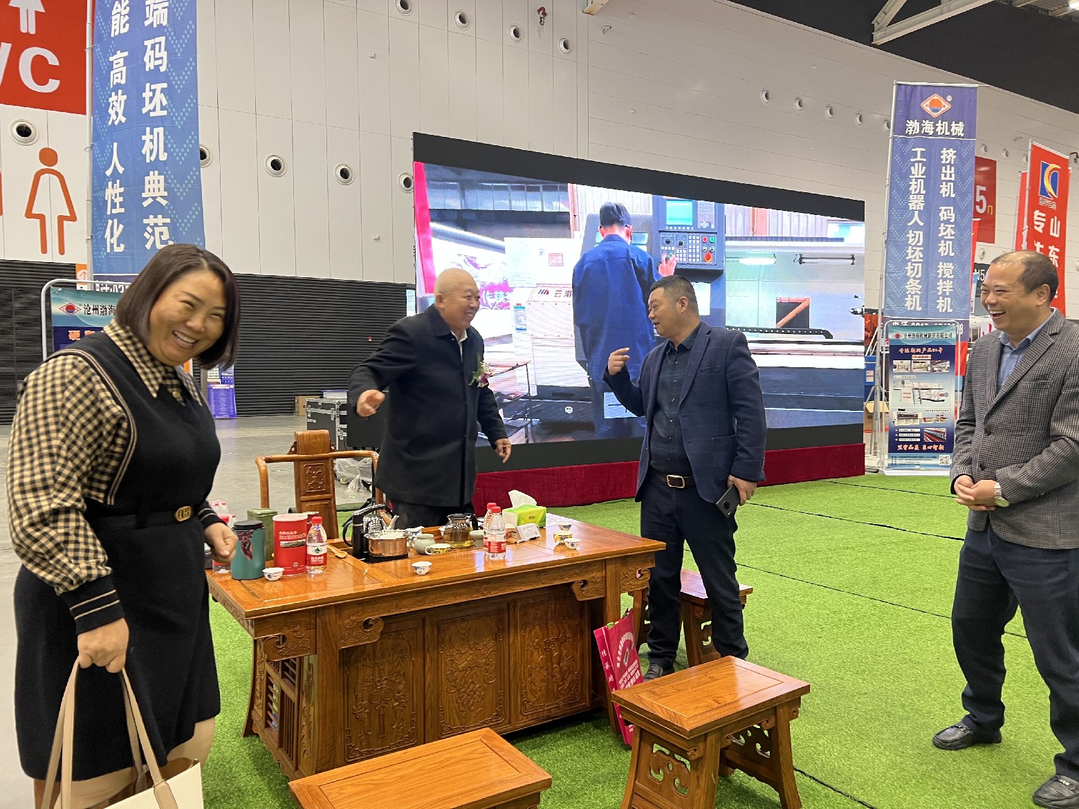 行業(yè)領(lǐng)導(dǎo)來到渤海機(jī)械的展廳,和董事長張加祥合影并進(jìn)行親切交談,對我公司的一直以來的工作予以肯定,希望渤海機(jī)械作為磚瓦裝備生產(chǎn)制造的資深企業(yè),再接再厲,繼續(xù)為行業(yè)的發(fā)展做出突出的貢獻(xiàn)。