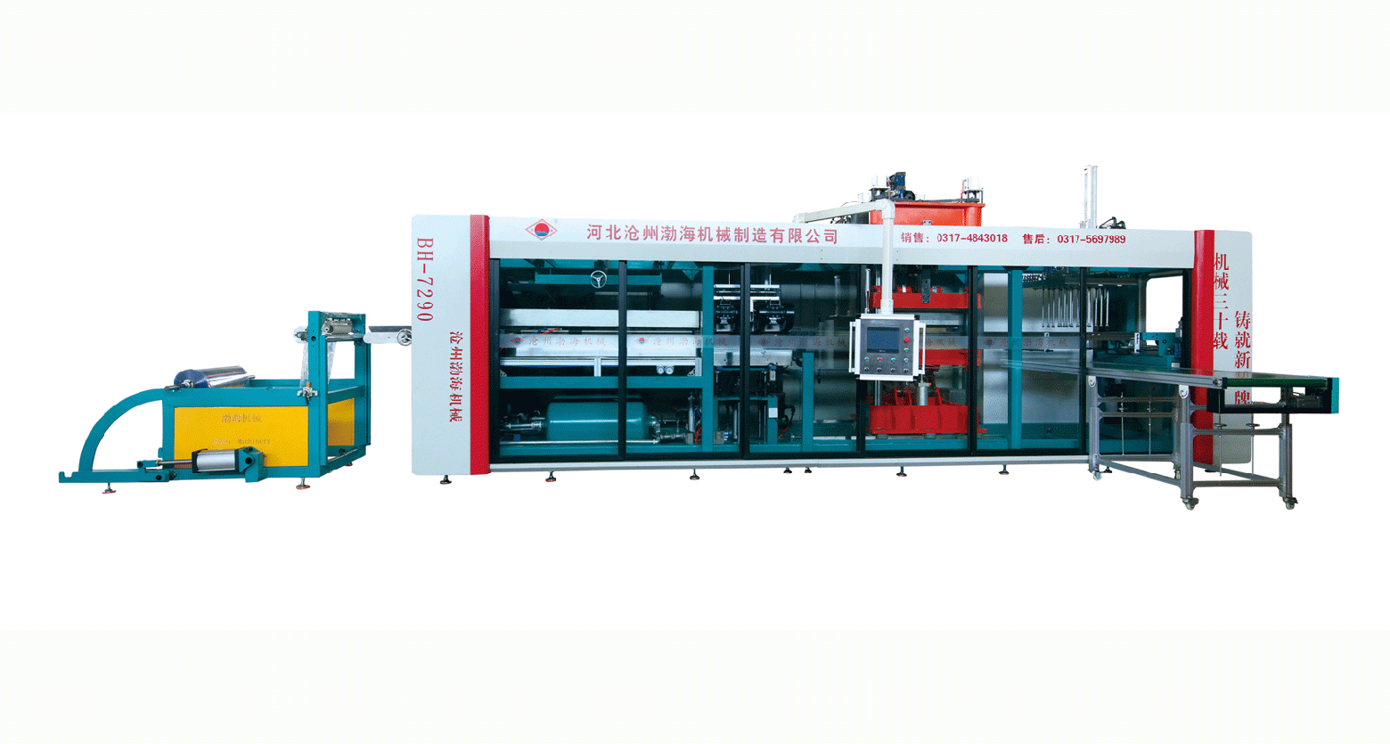 6.成型、裁切單元開模,合模伺服電機控制,制品自動計數(shù)輸出。